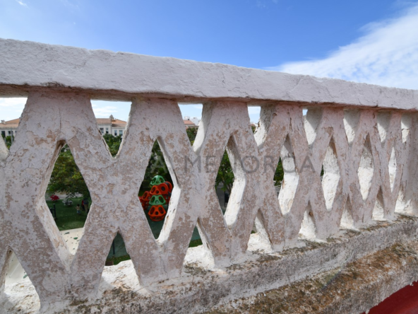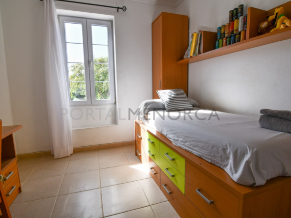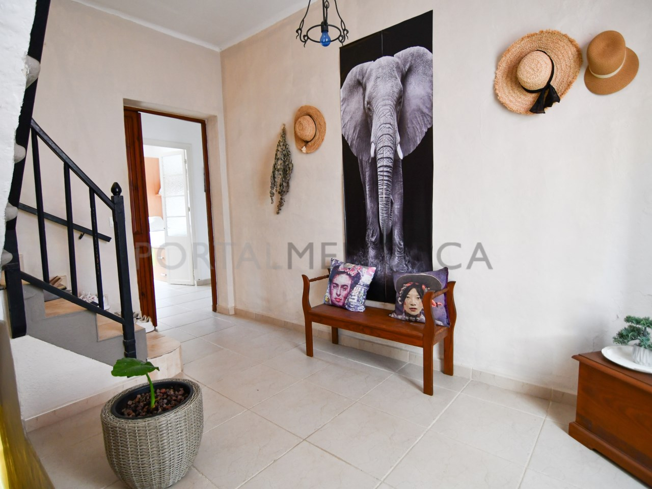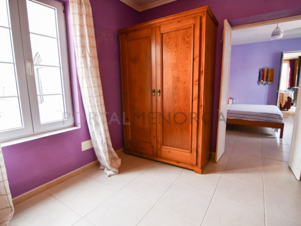 Se encuentra en la Esplanada de Es Castell, con zona verde directamente delante de la casa.