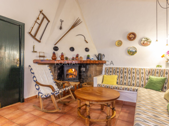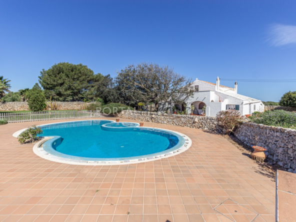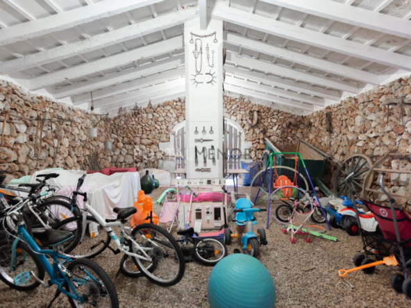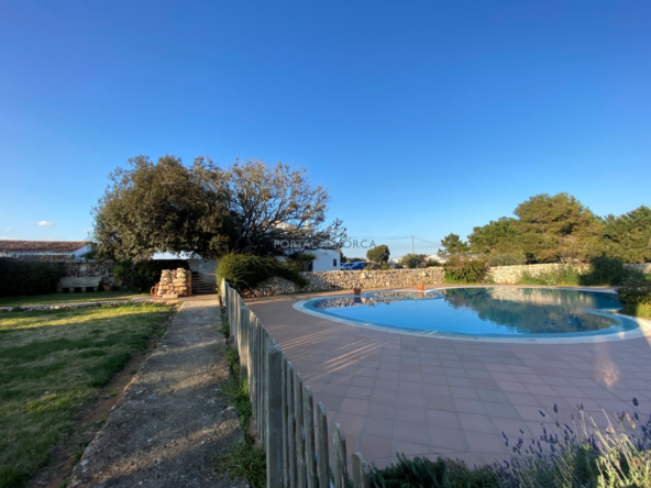 La propiedad destaca por su arquitectura tradicional de estilo menorquin y se encuentra rodeada por 12 hectáreas de terreno y dispone de fácil acceso por un camino asfaltado.