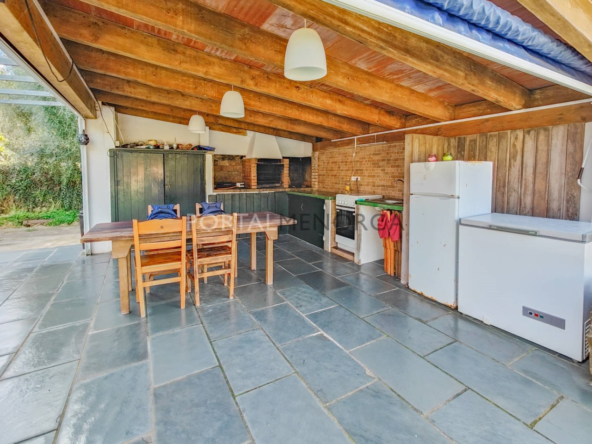 Destaca el espacio exterior, que se encuentra elevado y con una vista despejada. Junto a la piscina, disfrutarás de una agradable zona de barbacoa cubierta, además de una magnífica terraza. Tiene también una amplia superficie dedicada a huerto.