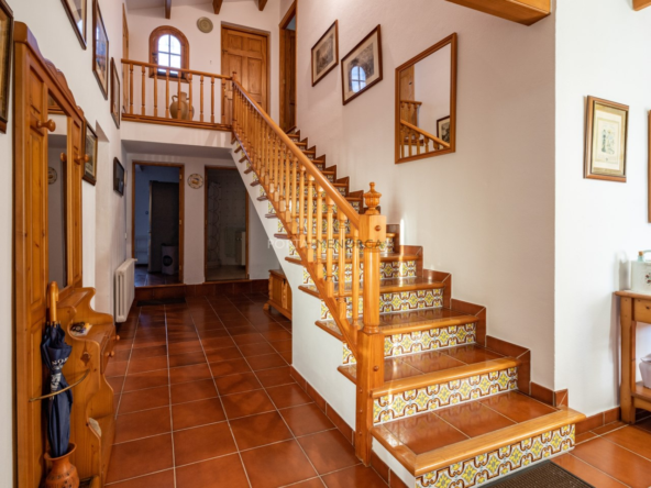 Edificada sobre una colina que domina grandes vistas al campo en dirección sur, aprovechando toda la luz del día, consta de planta baja y planta primera, unos almacenes agrícolas en las inmediaciones y una piscina.