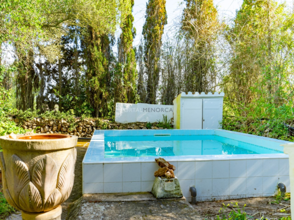 En el terreno encontrarás una alberca que, en ocasiones, se ha utilizado como piscina para niños pequeños, y una auténtica 'era' menorquina, que aporta carácter y tradición al espacio. La parcela, de forma regular, está orientada al Este, lo que garantiza una excelente entrada de luz natural.