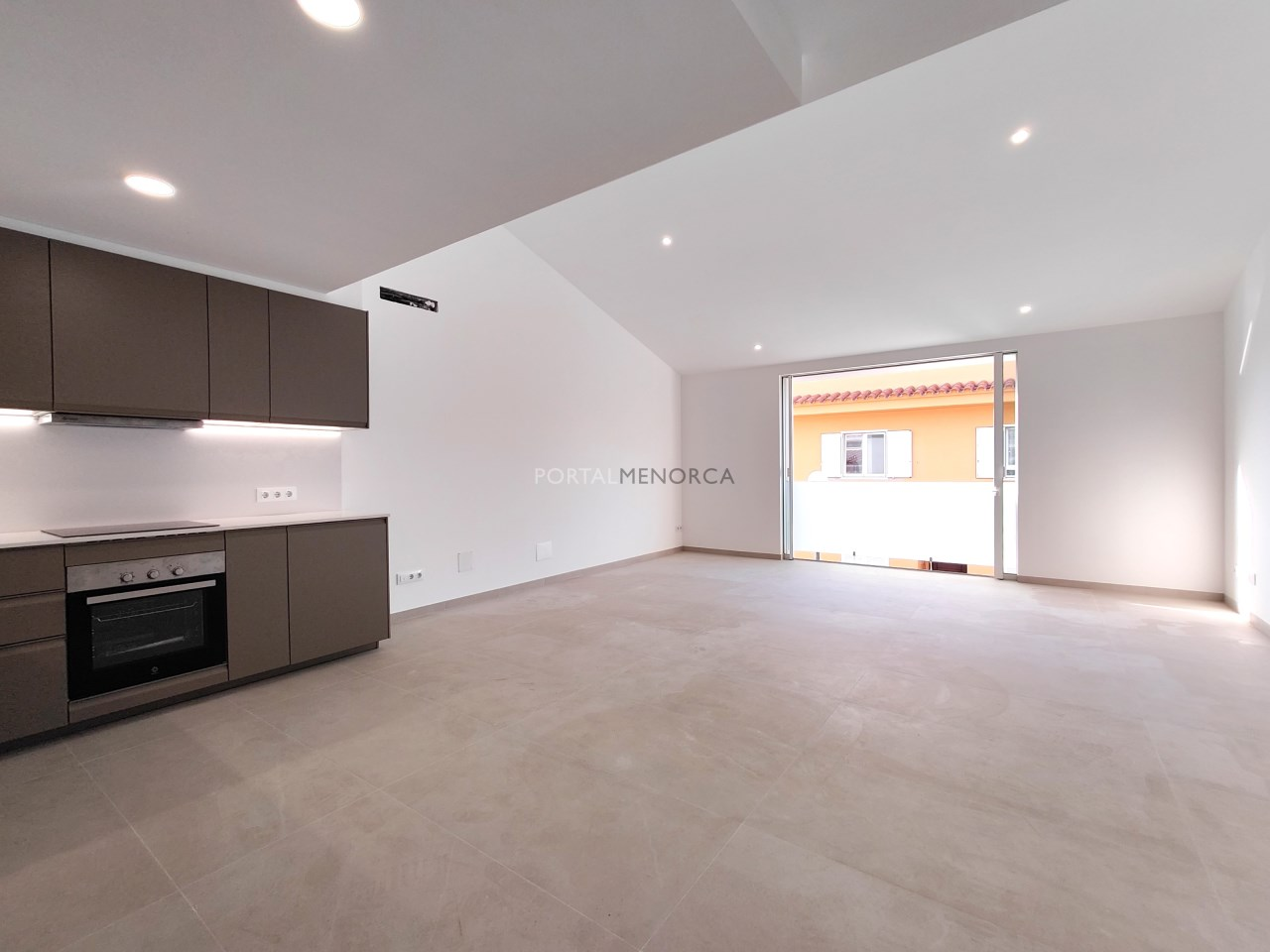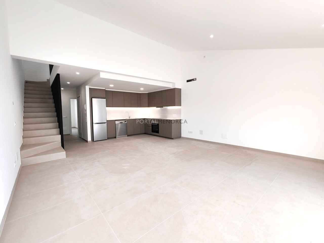 Se trata de una casa en primera planta a estrenar!. Consta de un amplio y soleado salón comedor con la cocina abierta, dos dormitorios, un baño y un trastero en la primera planta y un amplio dormitorio con un baño en suite y una pequeña terraza con lavadero en el altillo.