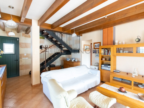 Te ofrecemos una vivienda unifamiliar con carácter menorquín rodeada de campo y al mismo tiempo a tan solo 10 minutos andando del carismático y popular céntrico pueblo de Es Mercadal.