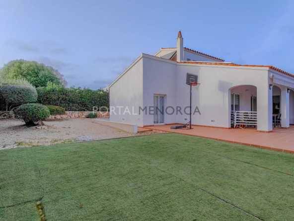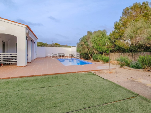 Esta propiedad disfruta de una zona exterior muy agradable, con un jardín de bajo mantenimiento y en la parte delantera hay una gran terraza con piscina y zona de barbacoa, ideal para disfrutar del verano menorquín.