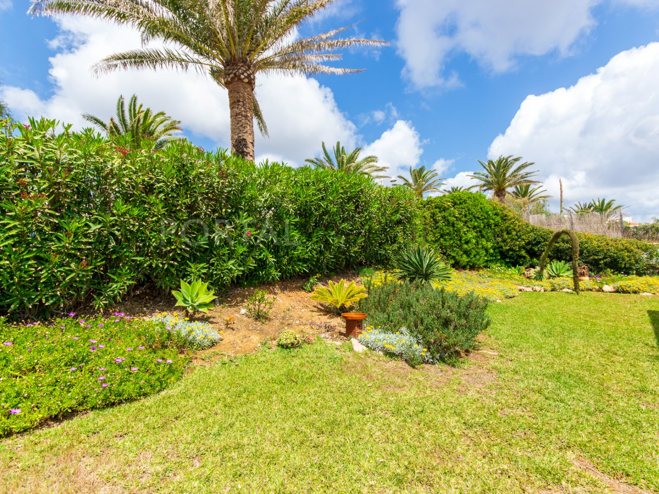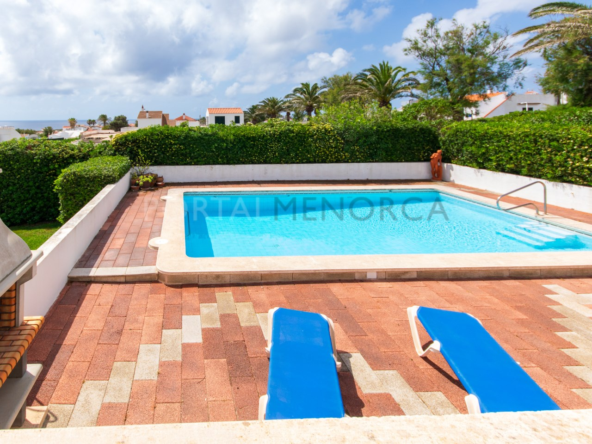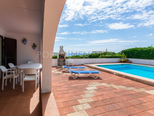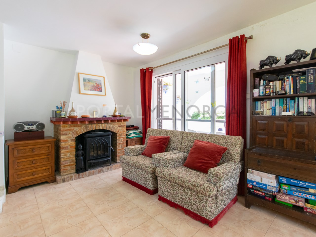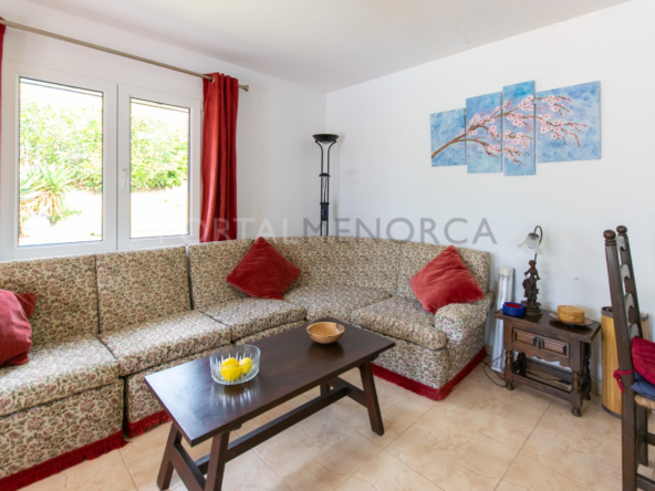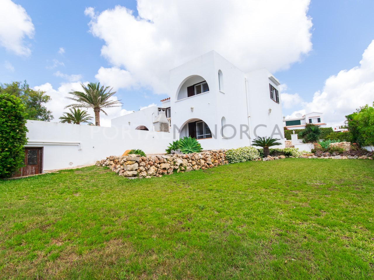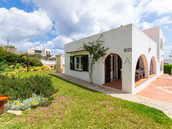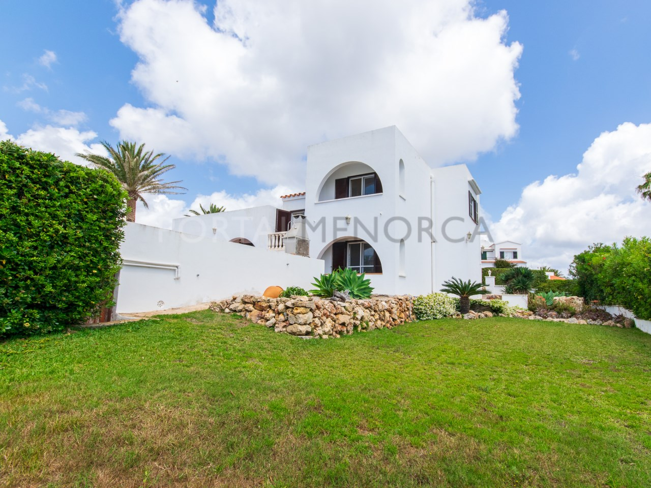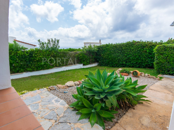 La casa tiene un garaje y un trastero, además de un bonito y espacioso jardín con zonas de césped, plantas y terraza con barbacoa. La propiedad se encuentra en buen estado y las ventanas son de PVC. S'Algar es una zona residencial tranquila cerca de playas como Punta Prima o calas como la famosa Cala Rafalet. También está cerca el acceso al Camí de Cavalls.