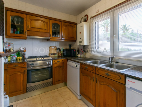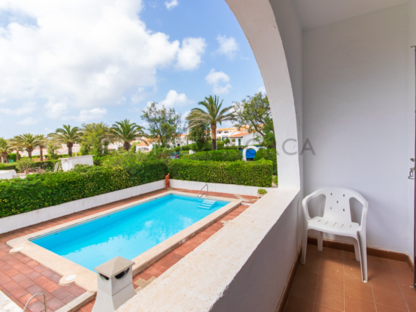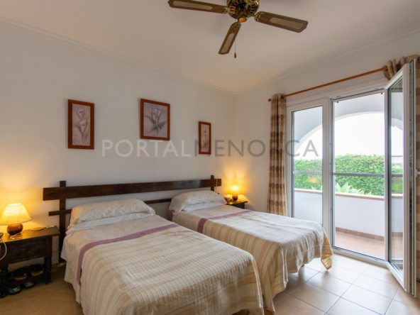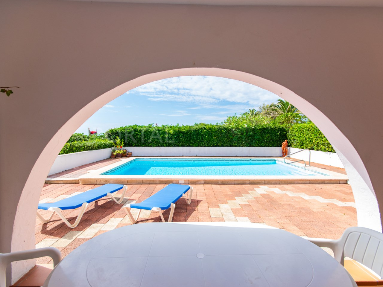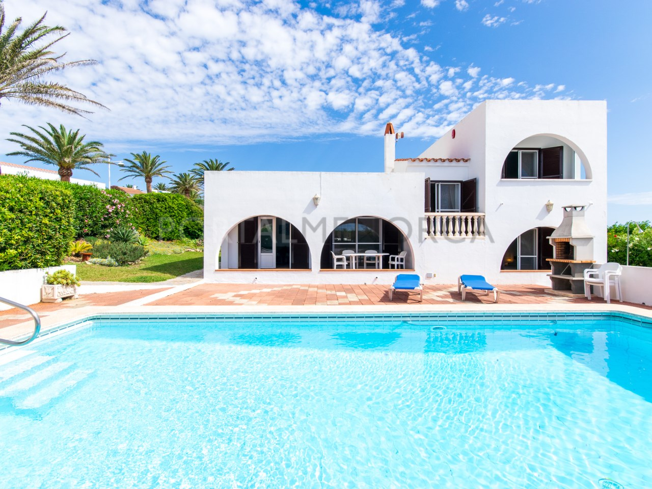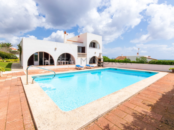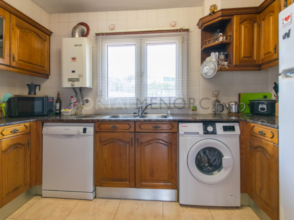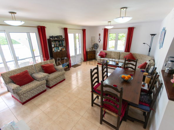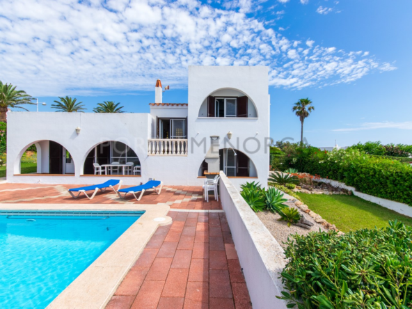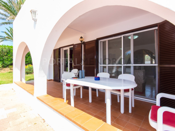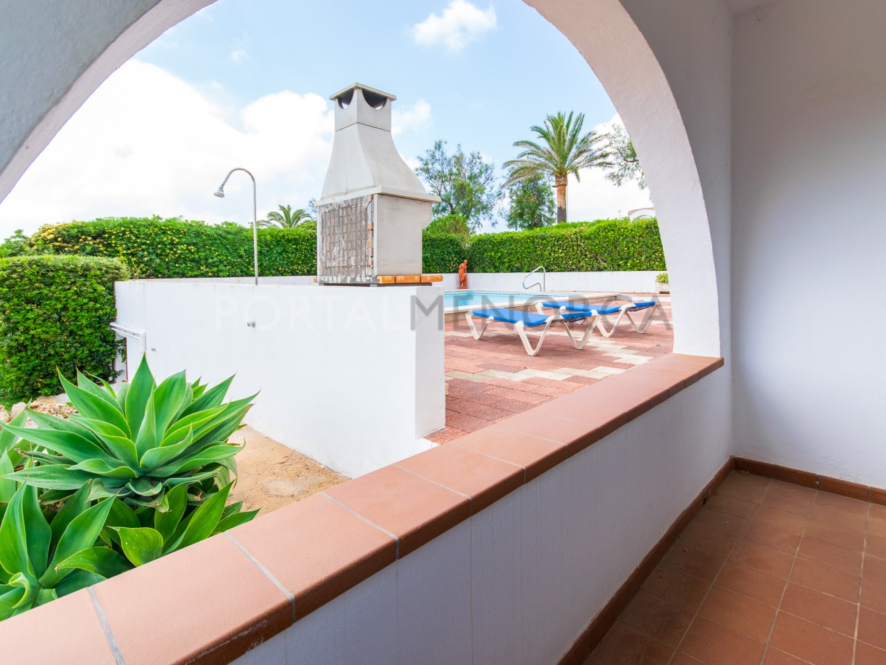 La casa tiene un garaje y un trastero, además de un bonito y espacioso jardín con zonas de césped, plantas y terraza con barbacoa. La propiedad se encuentra en buen estado y las ventanas son de PVC. S'Algar es una zona residencial tranquila cerca de playas como Punta Prima o calas como la famosa Cala Rafalet. También está cerca el acceso al Camí de Cavalls.