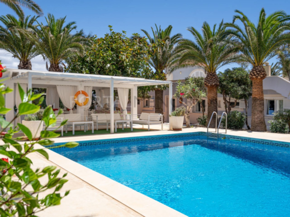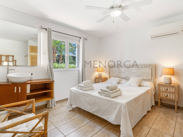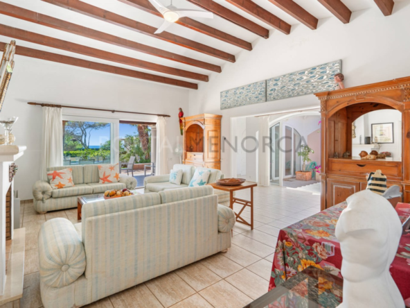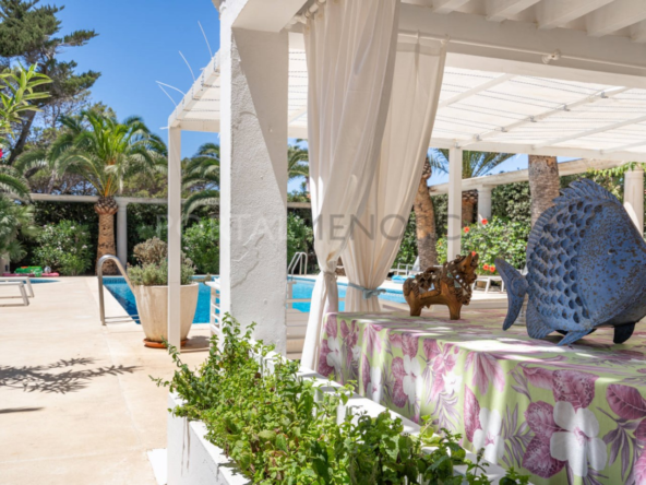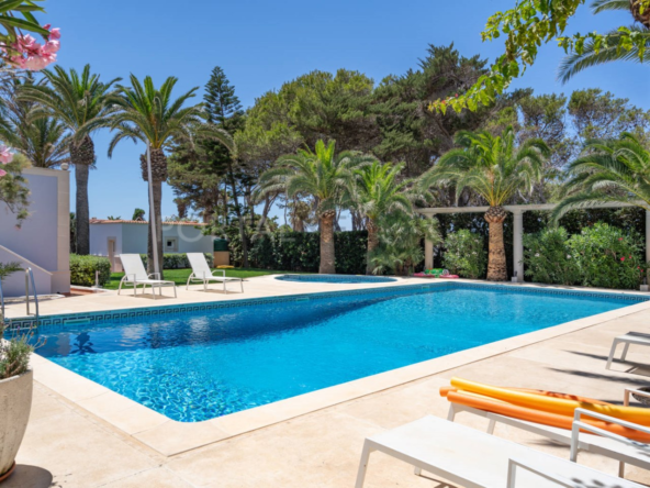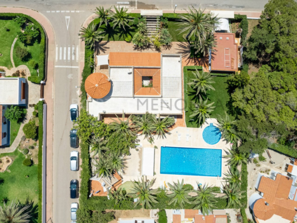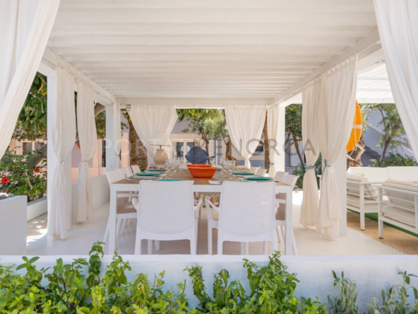 Esta exclusiva vivienda distribuida en una sola planta tiene una superficie de 250m² construidos en una parcela de 1600 m2 en la zona más residencial de la urbanización de Cala en Blanes de Ciutadella.