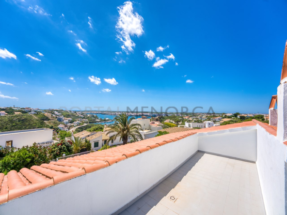 Terraza en la azotea con vistas excepcionales sobre Cala Llonga y el mar.