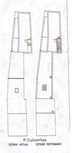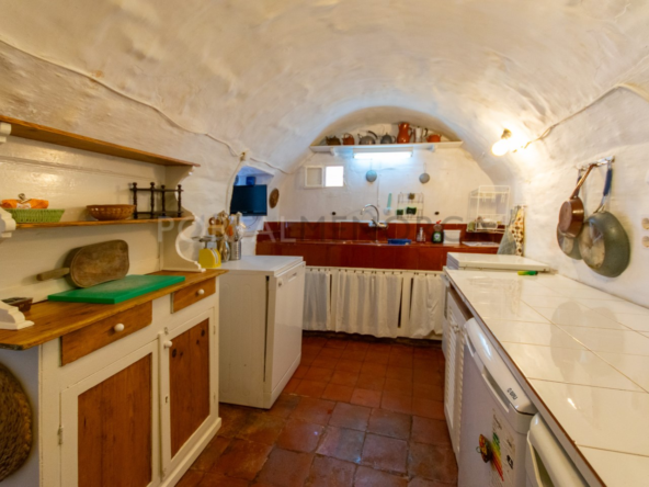 Como es típico en este tipo de casas, está distribuida en diferente niveles ofreciendo espacios polivalentes. Entrando desde la calle, encontramos el recibidor, un salón i/o despacho y, al fondo, la cocina y el comedor, ambos con techo abovedado, y salida al patio trasero con pozo, comedor de verano y un baño/lavadero. En el primer nivel hay un dormitorio doble con techo abovedado; seguidamente, en lo que sería el primer piso, hay una habitación con alcoba, actualmente utilizada como salón, que tiene aire acondicionado, un vestidor y un aseo; y al otro lado de la escalera, en este mismo nivel, encontramos otro pequeño salón abierto a través del cual se accede a un dormitorio doble, ambos con ventana al exterior. Finalmente, un último tramo de escalera nos lleva a las dos buhardillas preparadas para ser transformadas.