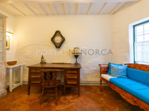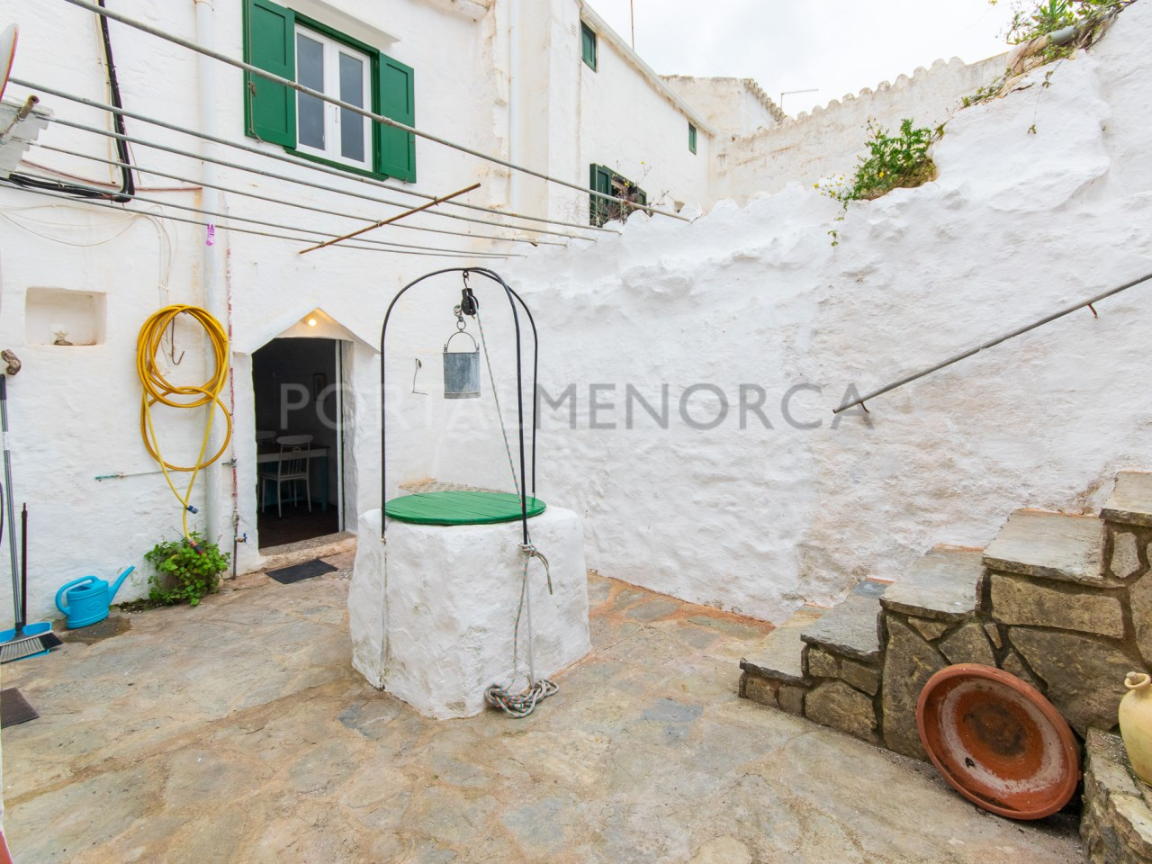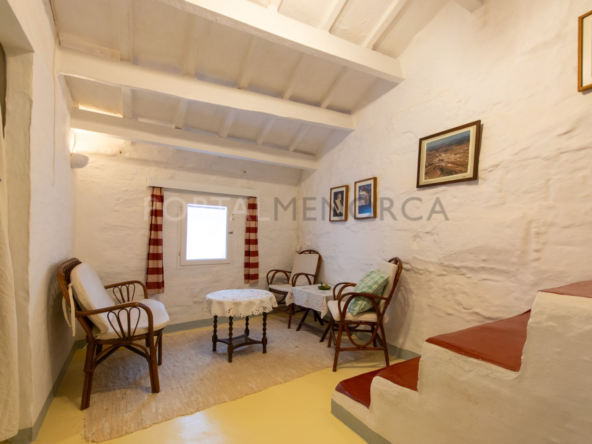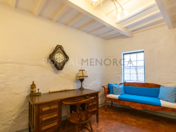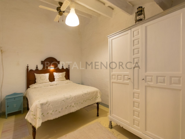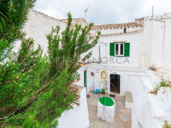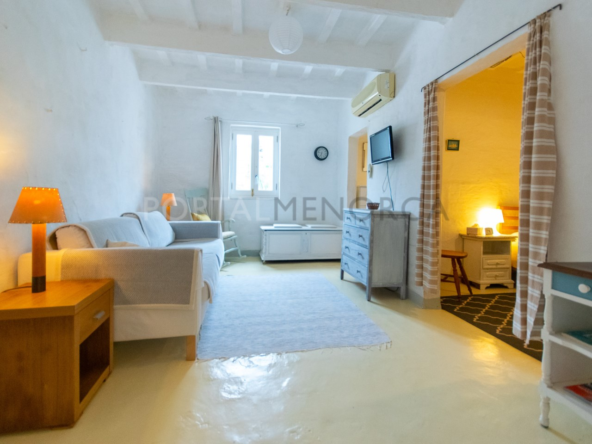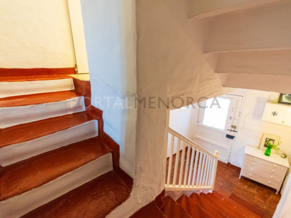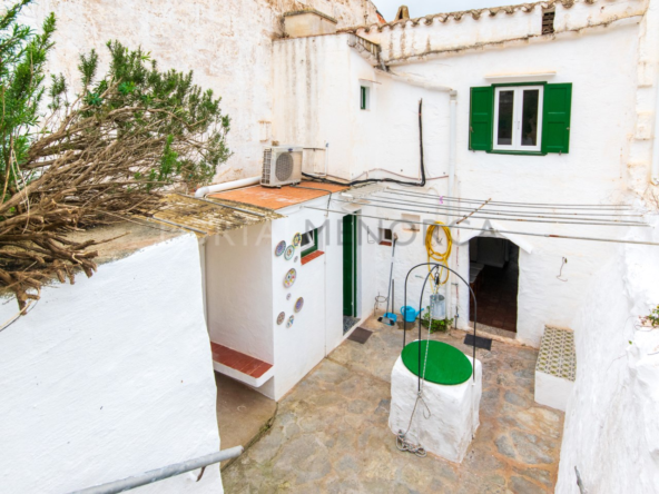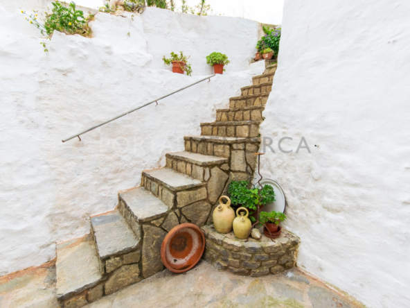 Estamos encantados de poder ofrecer esta casa típica de pueblo, ubicada en una céntrica calle peatonal de Mercadal y en la que destacamos el encanto de sus detalles tradicionales como vigas de madera vistas y suelos, paredes y escaleras originales.