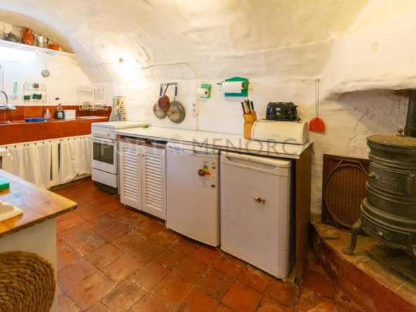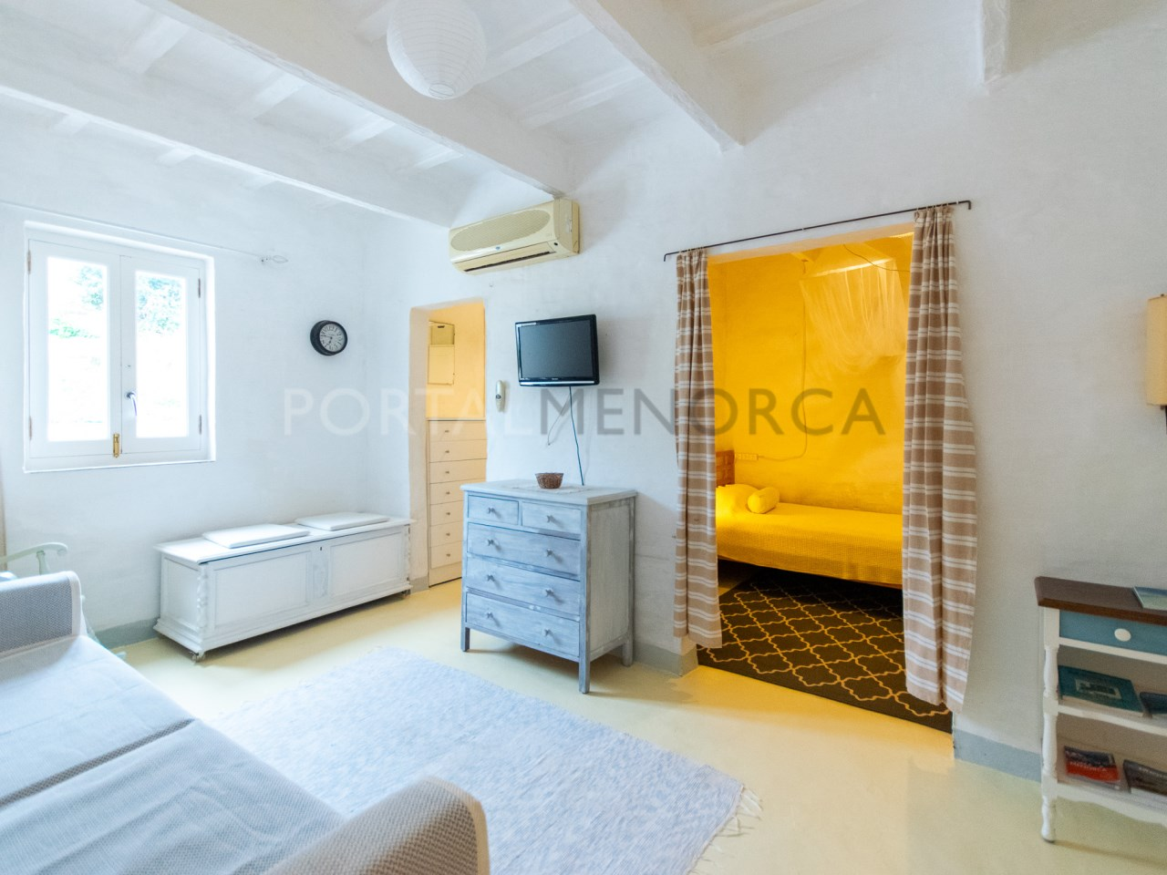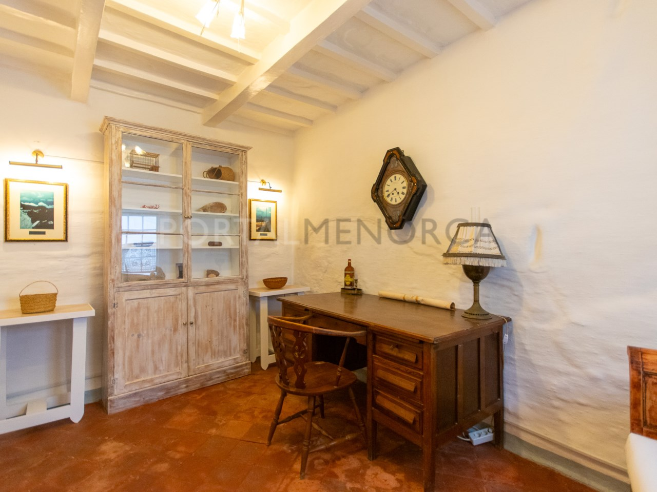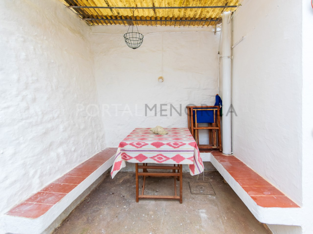 Estamos encantados de poder ofrecer esta casa típica de pueblo, ubicada en una céntrica calle peatonal de Mercadal y en la que destacamos el encanto de sus detalles tradicionales como vigas de madera vistas y suelos, paredes y escaleras originales.