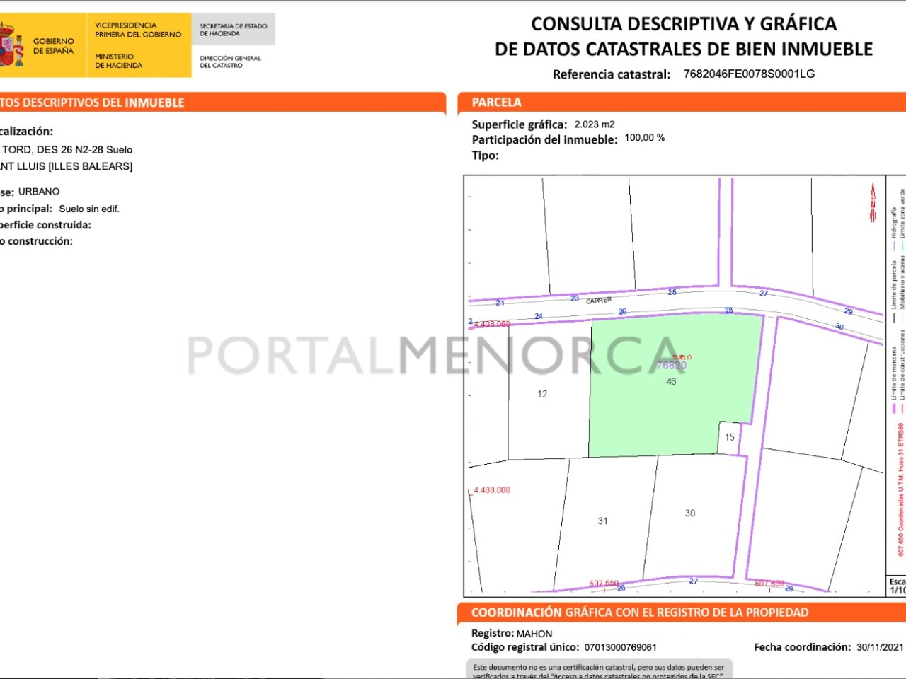 Parcela de 2023m2 con posibilidad de segregar en dos parcelas para construir dos casa, proyecto presentado en la exclusiva zona de Binibèquer (Menorca), una de las áreas residenciales más demandadas de la isla por su proximidad al mar, su tranquilidad y su entorno natural único.