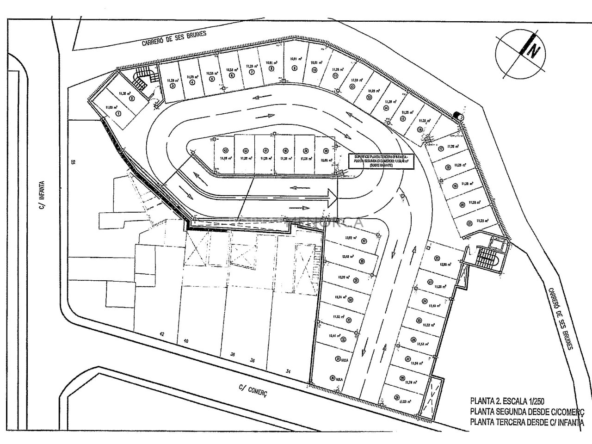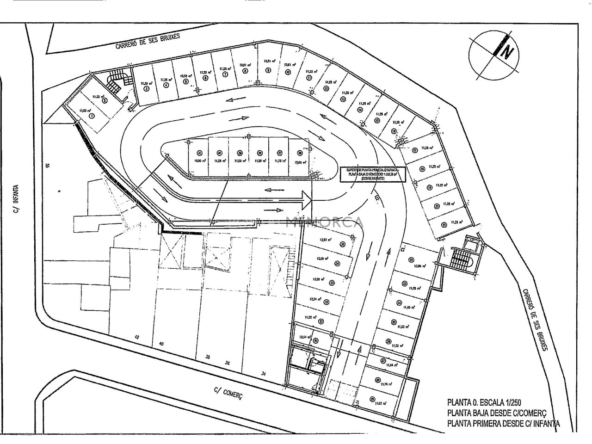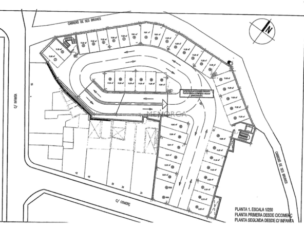 Disponemos de varias plazas de aparcamiento en venta en el centro de Mahón, con fácil acceso y suaves rampas de comunicación entre las plantas.