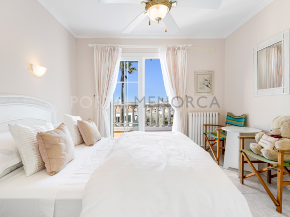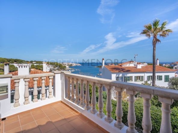 En el primer piso tenemos los otros tres dormitorios dobles, uno con baño en suite, un baño familiar y la terraza con muy buenas vistas al puerto de Cala Molí. En el exterior hay una agradable piscina con varias terrazas, cubiertas y descubiertas, una zona de barbacoa y el jardín tiene riego automático y es de fácil mantenimiento. Hay un garaje privado en la parte trasera y varios trasteros en el sótano.