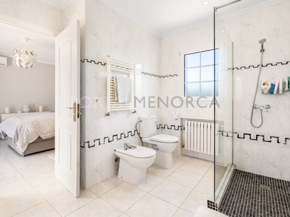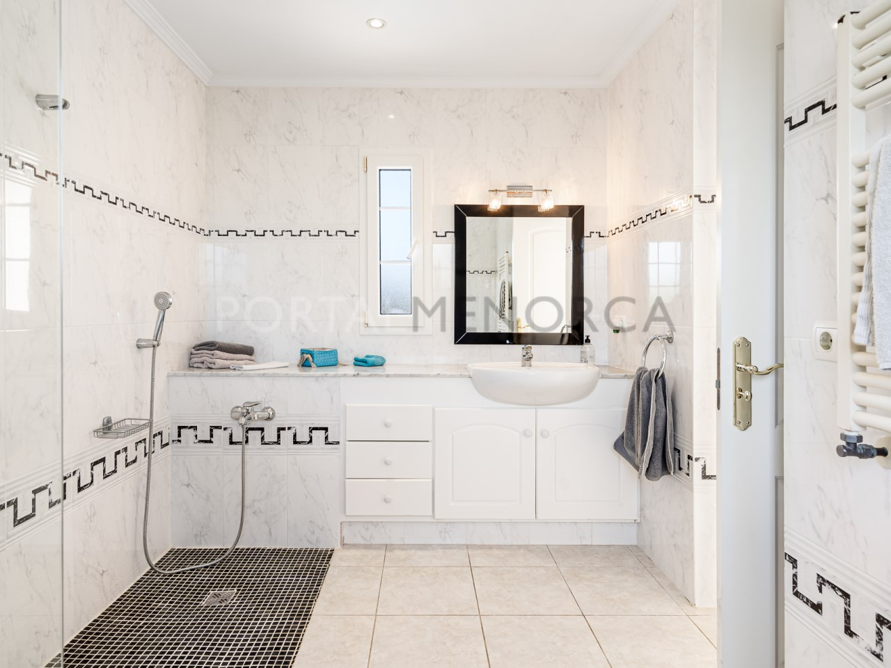 Toda la casa tiene aislamiento y ventanas de doble cristal, aire acondicionado y calefacción. Destaca por su luminosidad y la calidad de la construcción. Además, la zona de Addaia, con su puerto deportivo y el embarcadero de Cala Moli, es ideal para aquellos a los que les gusta disfrutar del mar, los paseos en barca, las calas y la tranquilidad. También tiene zona comercial con buenos restaurantes y está a pocos minutos de Na Macaret y Arenal d'en Castell donde poder disfrutar de sus playas.
