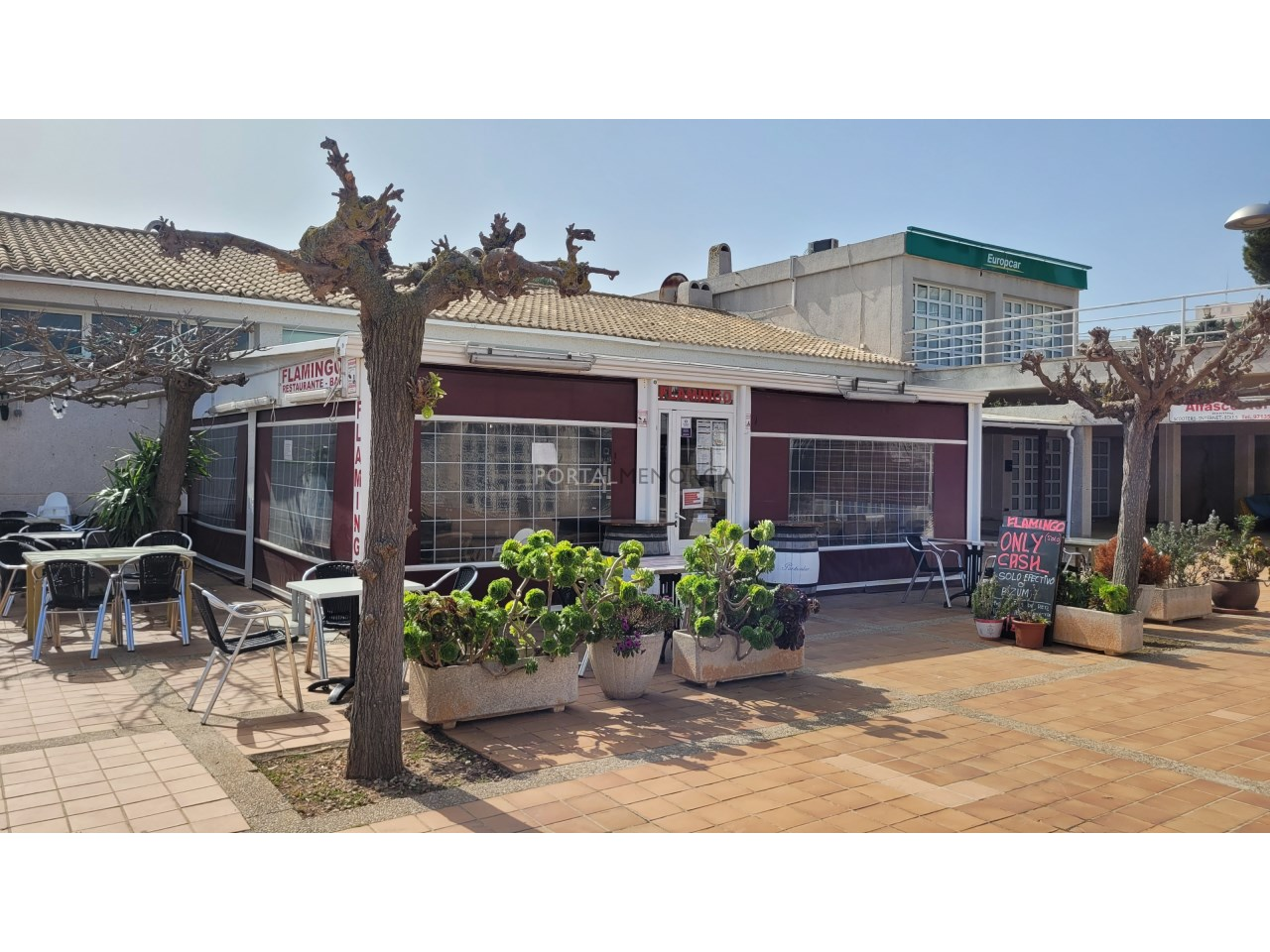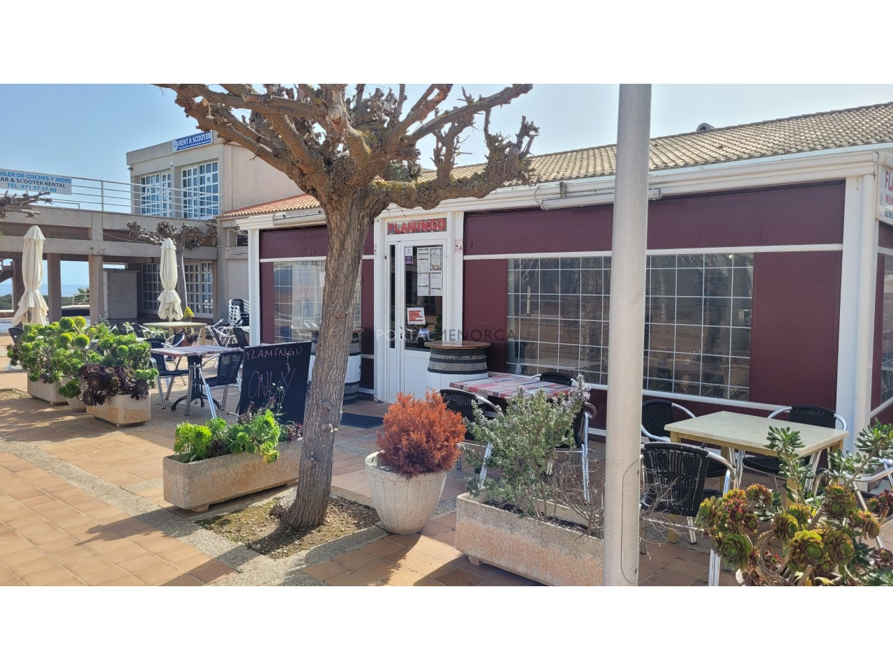 Consta de una terraza cubierta y cerrada para poder tener abierto todo el año que se colocan 25 mesas, zona de bar con barra y 6 mesas para comensales, cocina, y finalmente un sótano que es el almacén. Tiene un acceso desde la parte de detrás para suministros.