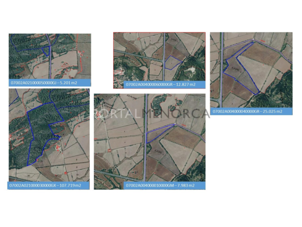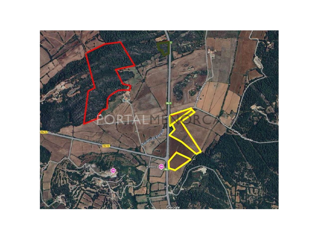Conjunto de tres terrenos o cercados marcados en color amarillo y que tienen una superficie de 7.983, 25.025 y 12.719 metros cuadrados respectivamente. El terreno es llano y de buena calidad para su cultivo. Hay una boyera de unos 18 m2 y un pozo, no se puede construir ninguna casa en ellos. El precio es de 161.000 €