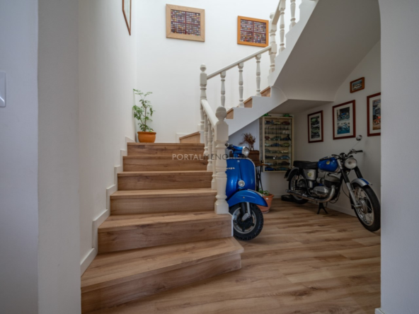 On the ground floor you will find a spacious living-dining room with fireplace, an eat-in kitchen, a double bedroom, a bathroom with shower, a garage, a pantry and a laundry room. Outside, you can enjoy a private swimming pool and a built-in barbecue with a functional kitchen, perfect for outdoor gatherings.